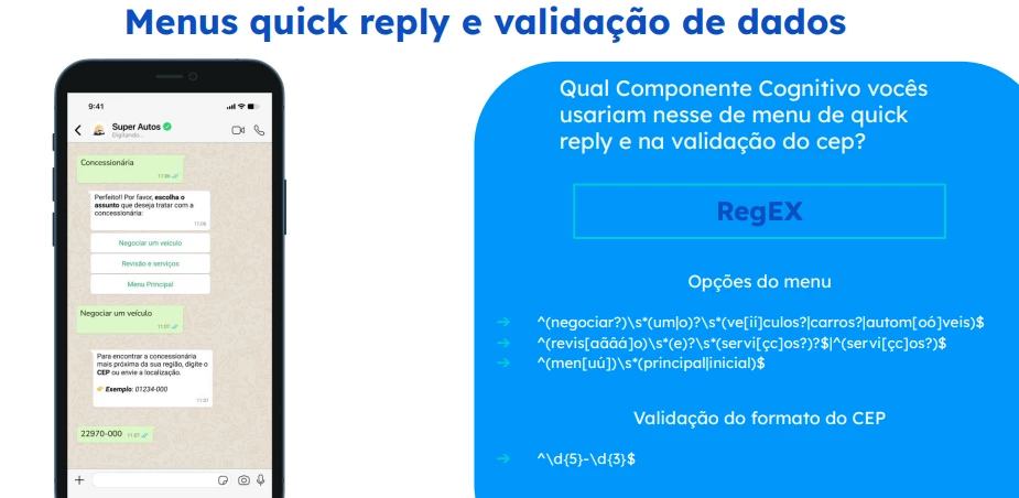 Se o usuário não selecionar um item das opções que tem disponível e escrever alguma coisa que não tenha no menu, o Regex vai tentar reconhecer o que ele disse e seguir o fluxo ou terá uma mensagem automática para o usuário escolher uma opção do menu? Como funciona nesse cenário que eu comentei? Fiquei na dúvida...