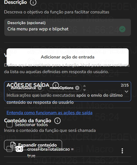 Não sei o que ocorreu na última att do blip, mas está inviável abrir uma ação dentro de um bloco e modifica-la, o html está totalmente bugado, não consigo clicar na opção “Adicionar ação de entrada” porque está sendo sobreposto pelo Gênero do contato. Segue alguns exemplos abaixo:
