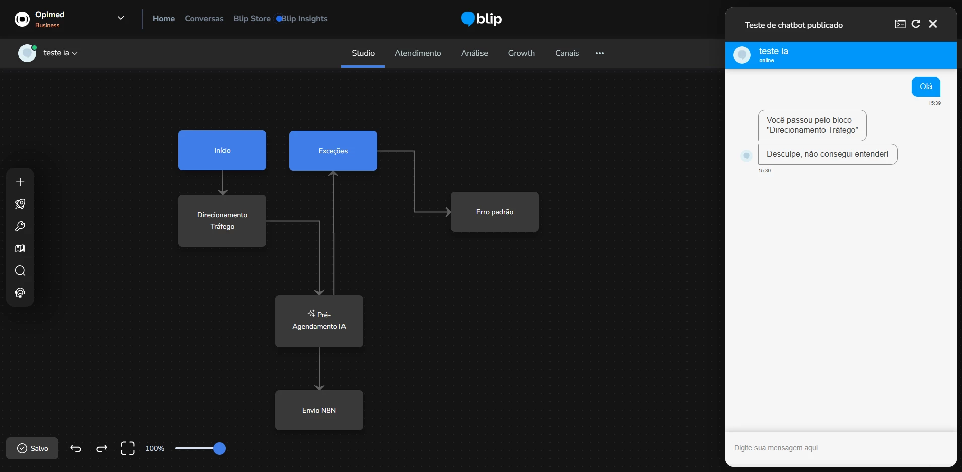 Montei o mesmo fluxo em dois contratos diferentes sem mudar nada, em um deles o AI agent funciona perfeitamente, já no outro, quando o fluxo chega no AI agent trava e vai para o erro padrão.