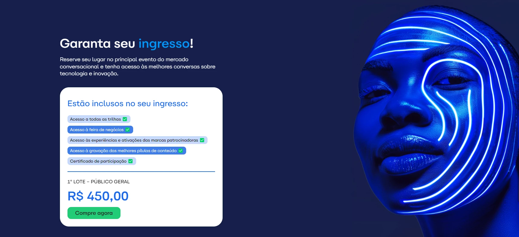 O maior evento de inteligência artificial conversacional te espera no dia 28 de agosto no Transamérica Expor Center, São Paulo.