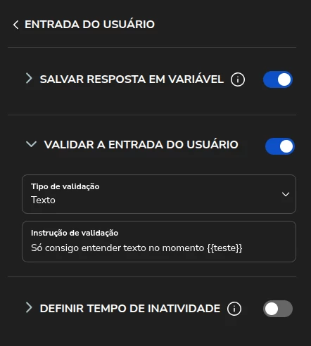 Encontrei na documentação a opção de validar pelo mesmo bloco onde recebo a entrada do usuário, no entanto, tentei configurar a mensagem que será retornada para o cliente ao enviar um input inesperado e notei que não consigo utilizar variavel dentro deste campo.