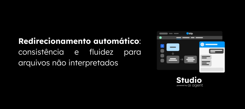 Sempre que o agente recebe um arquivo fora dos padrões suportados, ele executa um redirecionamento automático para um bloco ou etapa previamente definida no fluxo. O criador do fluxo seleciona o destino ideal (como uma mensagem de erro padrão ou um bloco de exceções) diretamente na aba de configuração de interpretação do agente.