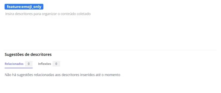 Aplique o descritor feature:emoji_only aos Temas para identificar e classificar automaticamente interações que não contêm texto, apenas emojis, facilitando análises específicas desse formato de comunicação.