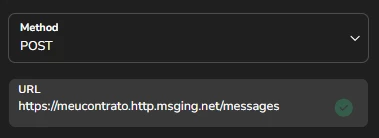 - URL: Sua URL para enviar mensagens. (A url segue a estrutura https://{{contractid}}.http.msging.net/messages).