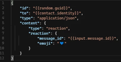 Para enviar uma reação à mensagem do usuário, utilize o JSON abaixo no corpo da requisição: