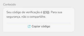 O conteúdo da notificação tem um template pré-determinado pela Meta, texto com o token como variável e botão de copiar o conteúdo:
